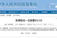 航行警告!黃海中部實彈射擊